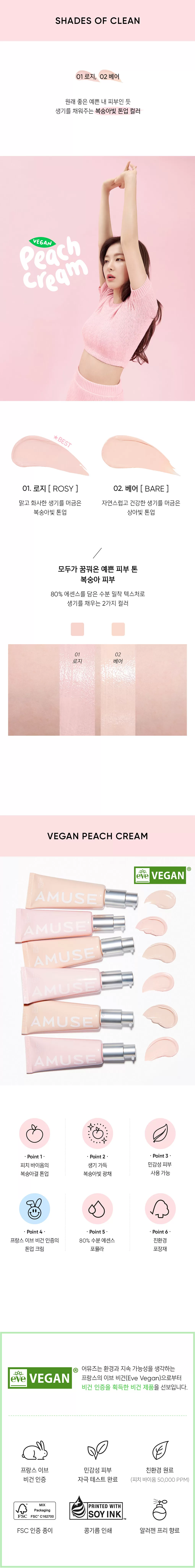 AMUSE Dew Jelly Vegan Peach Cream er en hypoallergen tone-up krem med rene veganske ingredienser som kan brukes komfortabelt uten å irritere sensitiv hud. Kremen er dermatologisk testet og inneholder en ren formulering med 70% essens. Essensen består blant annet av Betula Platyphylla Japonica Juice og 10.000ppm Panthenol. En tone-up krem med SPF30 PA++ UV beskyttelse som vil sørge for at huden holder elastisiteten og gir en glødende finish.
