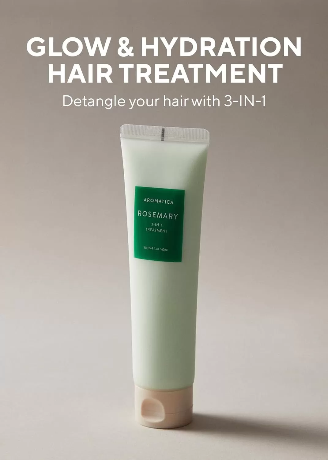 Aromatica Rosemary 3-in-1 Treatment 160ml er en multifunksjonell hårbehandling som kombinerer fordelene av en balsam, maske og leave-in-behandling. Beriket med økologisk rosmarinekstrakt, styrker og reparerer denne formelen håret fra rot til tupp, samtidig som den tilfører intens fuktighet og næring. Den lette, men rike formelen hjelper med å redusere håravfall, forbedre hårstyrke og gi glans, samtidig som den beskytter mot daglig slitasje. Passer for alle hårtyper, spesielt for tørt og skadet hår som trenger ekstra pleie.