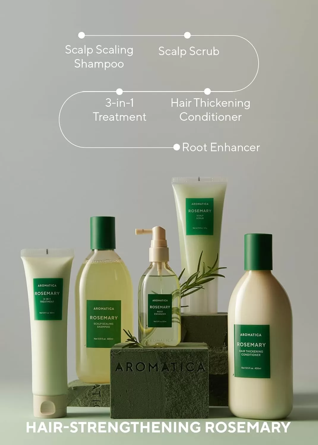 | Ingredienser | Rosmarinus Officinalis (Rosemary) Leaf Extract, Pinus Densiflora Leaf Extract, Zingiber Officinale Root Extract, Cetearyl Alcohol, Glycerin, Aqua, Dipalmitoylethyl Dimonium Chloride, Isoamyl Laurate, Caprylic/Capric Triglyceride, Coco-Caprylate/Caprate, Cetyl Alcohol, Glyceryl Stearate, Rosmarinus Officinalis Leaf Oil, Ocimum Basilicum Leaf Extract, Origanum Vulgare Leaf Extract, Eclipta Prostrata Extract, Stearyl Alcohol, Behentrimonium Methosulfate, Propanediol, Polyglycerin-3, Argania Spinosa Kernel Oil, Betaine, Ethylhexylglycerin, Panthenol, Isoamyl Cocoate, Polyquaternium-10, Hydrolyzed Jojoba Esters, PCA, Sodium Hyaluronate Crosspolymer, Hydrogenated Olive Oil Unsaponifiables, Cetearamidoethyldiethonium Succinoyl Hydrolyzed Pea Protein, Moringa Oleifera Seed Oil, Orbignya Oleifera Seed Oil, Hydrolyzed Glycosaminoglycans, Verbena Officinalis Extract, Chamomilla Recutita Flower Extract, Abies Sibirica Oil, Cupressus Sempervirens Oil, Styrax Benzoin Resin Extract, Dipropylene Glycol, Limonene, Butylene Glycol, 1,2-Hexanediol, Ethylhexylglycerin, Raspberry Ketone, Sodium Acetate, Sodium Chloride, Isopropyl Alcohol, Linalool. |