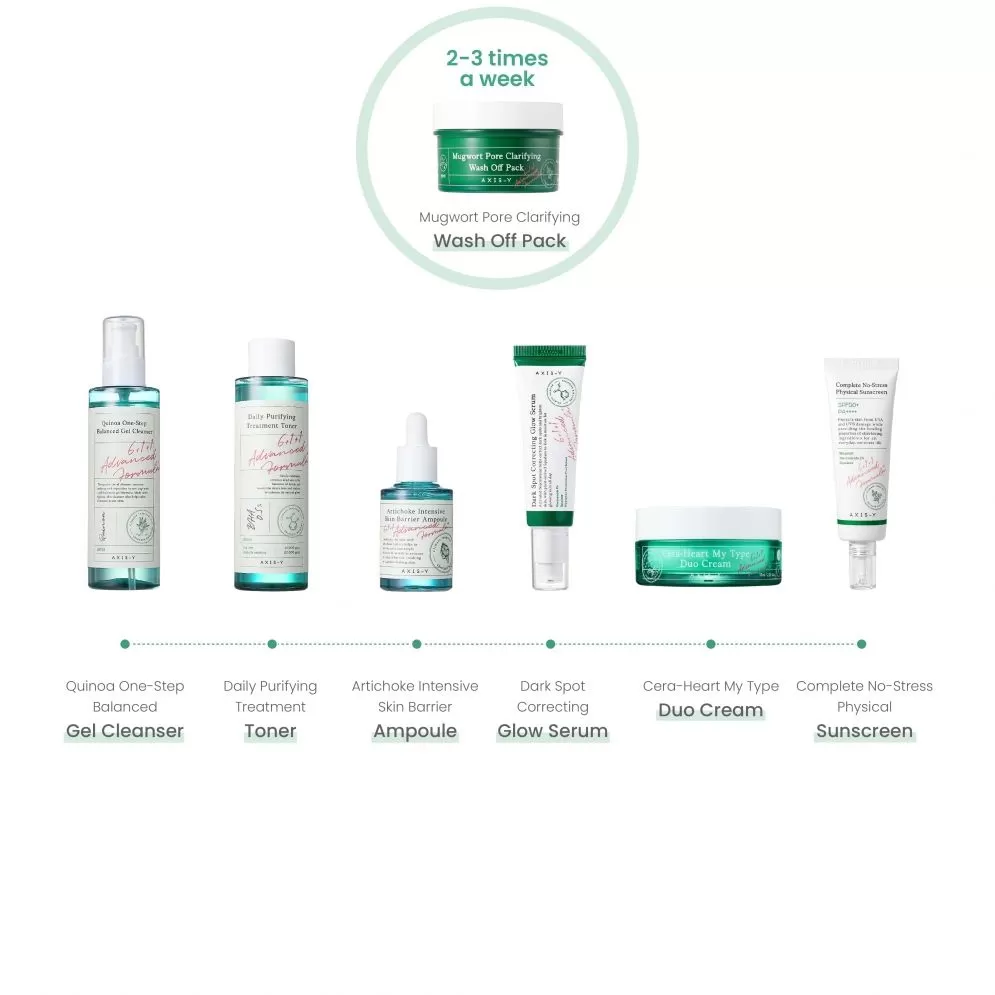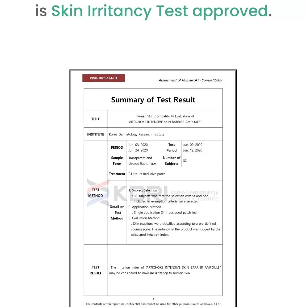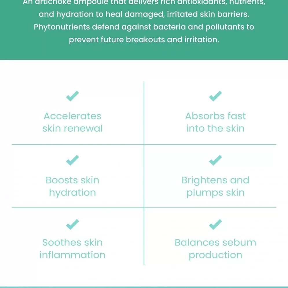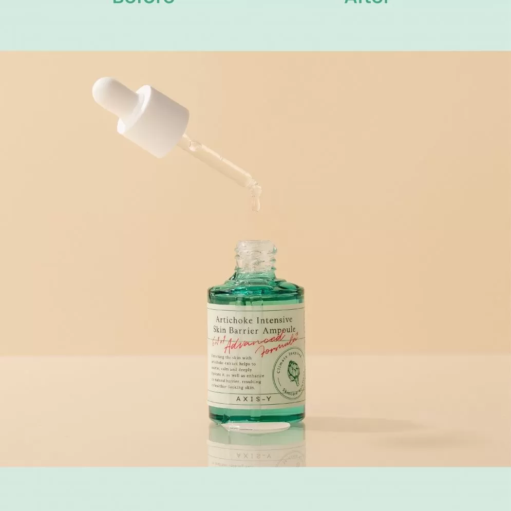 Axis-Y Artichoke Intensive Skin Barrier Ampoule er en kraftig fuktighetsgivende ampulle som inneholder 10-hyaluron syre og 6 høy kvalitets ingredienser. 10-hyaluron syre vil hydrere og låser fukten dypt inn i hudlagene og vil etterlate huden myk og glatt. Denne ampullen vil hjelpe huden å regenerere, beroliger irritert hud, styrker den naturlige hudbarrieren og balanserer sebum produksjonen i huden takket være 110.000ppm Centella Asiatica, 10.000ppm Tea Tree ekstrakt, Burdock rot, Aloe Vera, Lakris og Okra. Hovedingrediensen er ekstrakt fra artisjokk som vil hjelpe huden holde på fukt, bygge opp celleveggene som sammen med LTR teknologi vil minske størrelsen på porene.