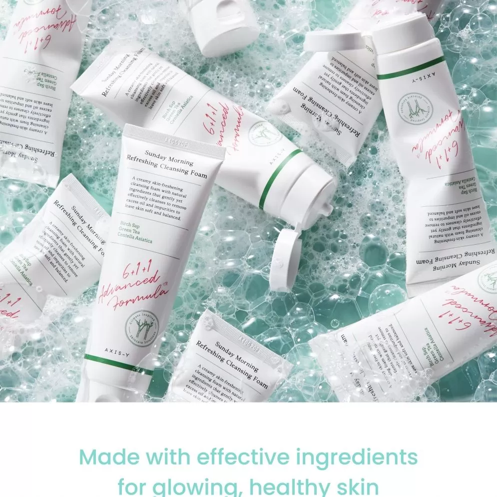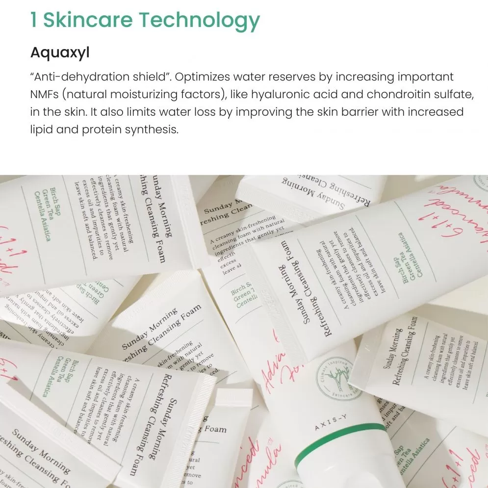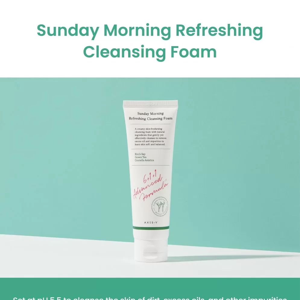 Axis-Y Sunday Morning Refreshing Cleansing Foam er en mild og effektiv skumrens som har en pH verdi på 5.5, utviklet med patentert hudpleieteknologi; Aquaxyl som vil etterlate huden hydrert og balansert. Denne rensen inneholder beroligende ingredienser og vil effektivt rense smuss, overflødig talg og andre urenheter uten å tørke ut huden.