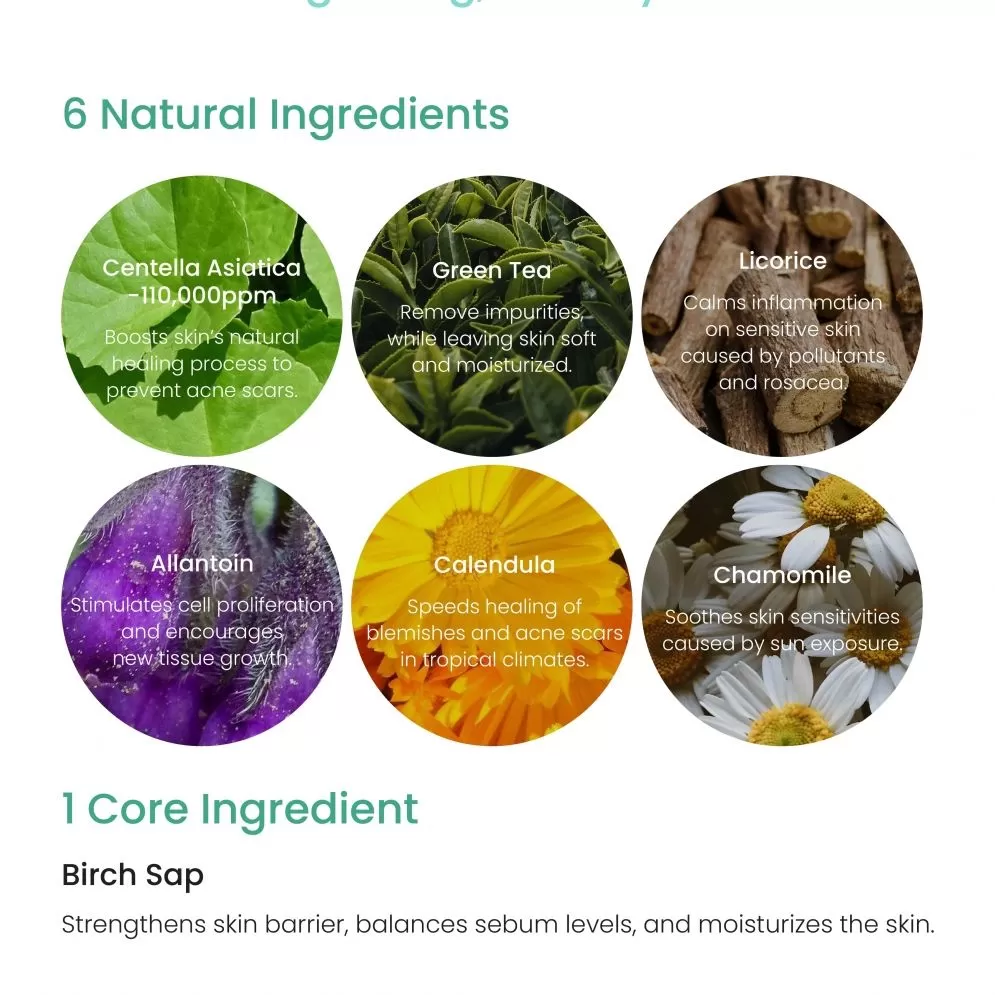 | Ingredienser | Water (Aqua), Glycerin, Sodium Cocoyl Isethionate, Sodium Methyl Cocoyl Taurate, Potassium Cocoyl Glycinate, Coco-Betaine, Potassium Cocoate, Polyquaternium-67, Xylitylglucoside, Citric Acid, Anhydroxylitol, Sodium Chloride, Betula Platyphylla Japonica Juice, Xylitol, 1,2-Hexanediol, Glucose, Sodium Acetate, Sodium Hyaluronate, Butylene Glycol, Trehalose, Allantoin, Chamomilla Recutita (Matricaria) Flower Extract, Glycyrrhiza Glabra (Licorice) Root Extract, Camellia Sinensis Leaf Extract, Perilla Frutescens Leaf Extract, Oryza Sativa (Rice) Bran Extract, Houttuynia Cordata Extract, Centella Asiatica Extract, Calendula Officinalis Flower Extract, Disodium EDTA, Potassium Benzoate. |