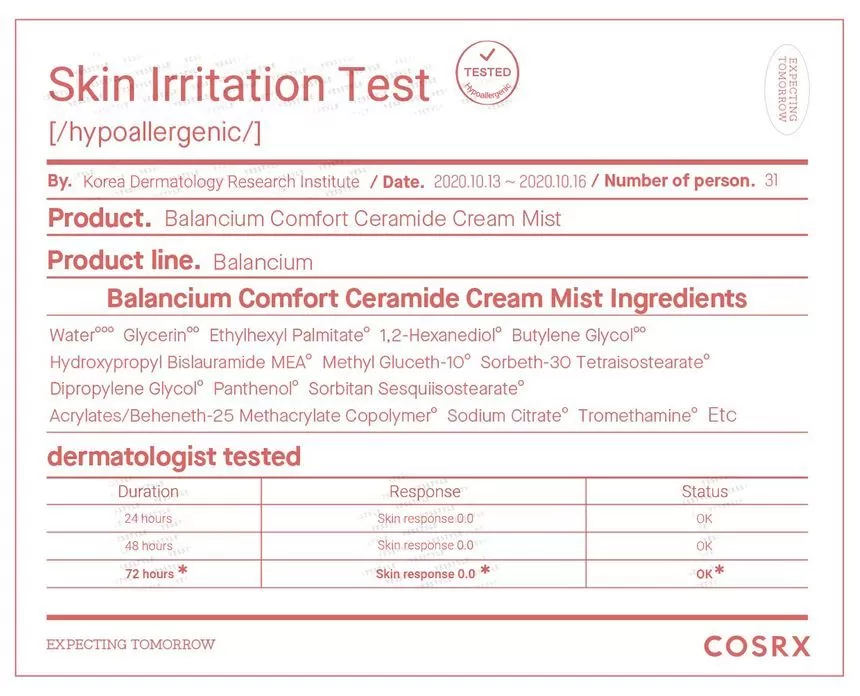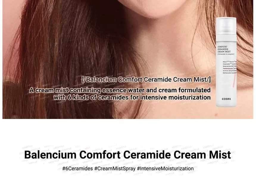 COSRX Balancium Comfort Ceramide Cream Mist er utviklet for deg med tørr og sensitiv hud. Denne gir en huden en fuktighetsboost og kan brukes gjennom dagen. Mist sprayen inneholder 6 forskjellige ceramider som er kjent for å styrke hudbarrieren og hjelper huden å holde på fuktigheten. I tillegg inneholder denne panthenol som er kjent for å berolige huden i tillegg til å styrke hudbarrieren.