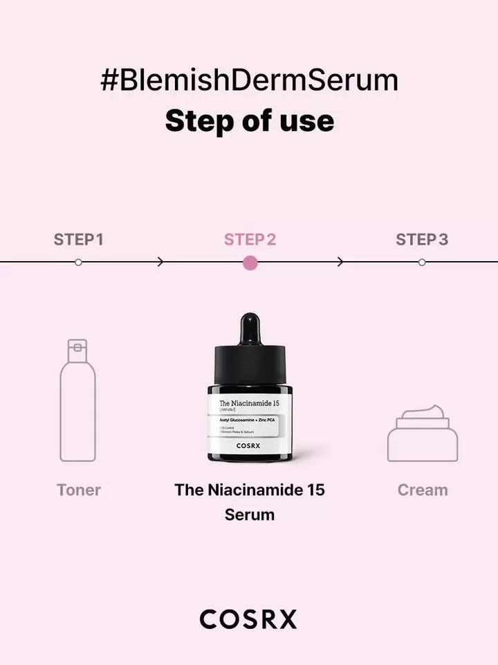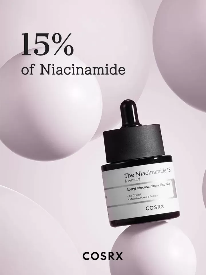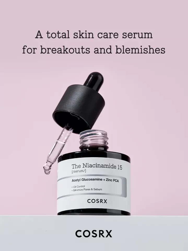 COSRX The Niacinamide 15 Serum er en spesialutviklet serum med alle nødvendige ingredienser for total aknepleie, inneholder høye konsentrasjoner av aktive ingredienser som retter seg mot akne i alle stadier, fra begynnelse til slutt. Denne serumen inneholder 15% niacinamide som er effektiv mot mørke flekker og forbedrer hudteksturen, 1% Zinc pca vil behandle kviser, utbrudd og reduserer sebum sekresjon, 0.1% Allantoin vil tilføre huden fuktighet og berolige irritert hud, 2% Acetylglucosamine som eksfolierer huden og etterlater den myk og smidig.