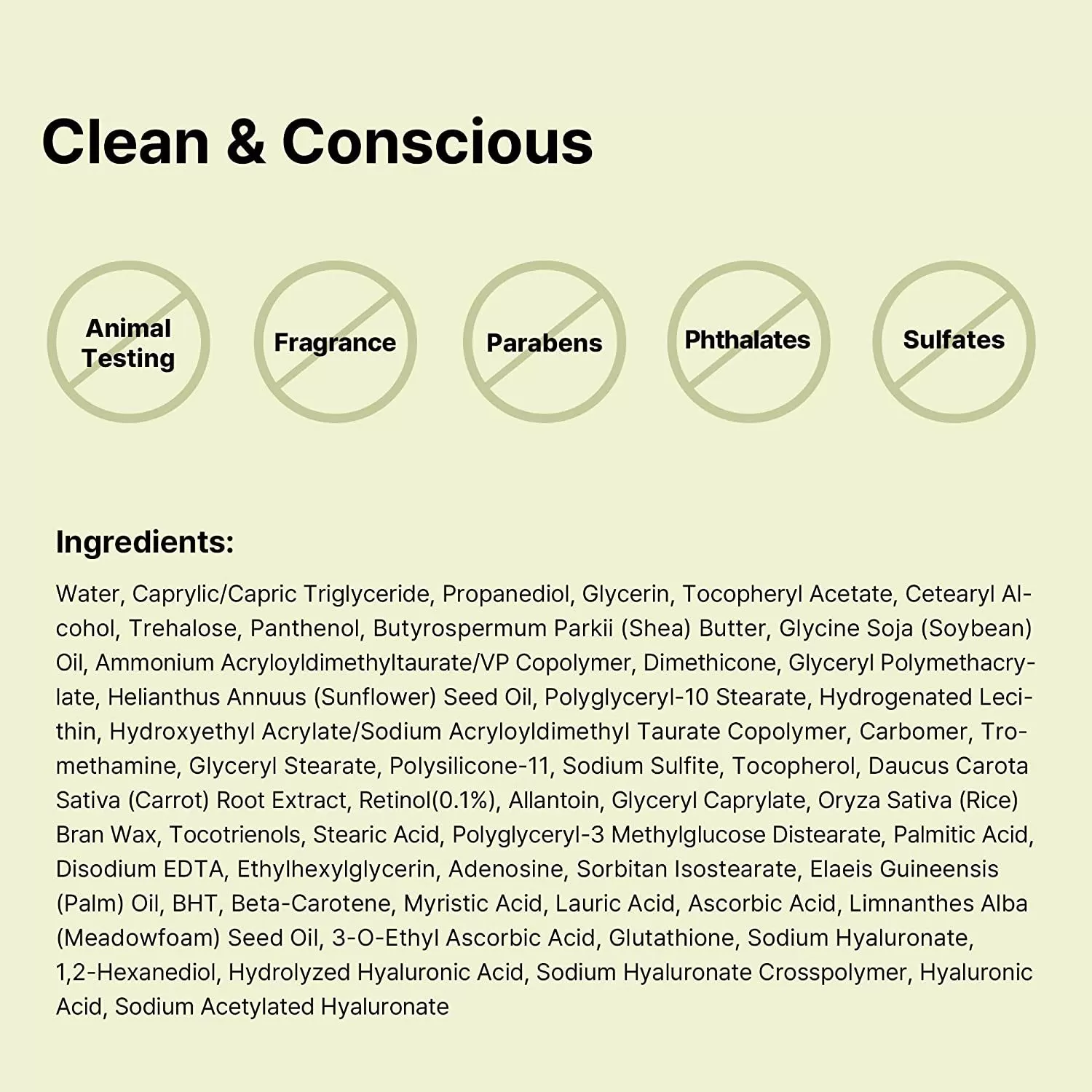 - Ren Retinol (Vitamin A): Reduserer rynker og fine linjer.