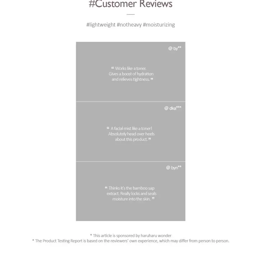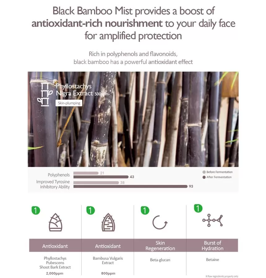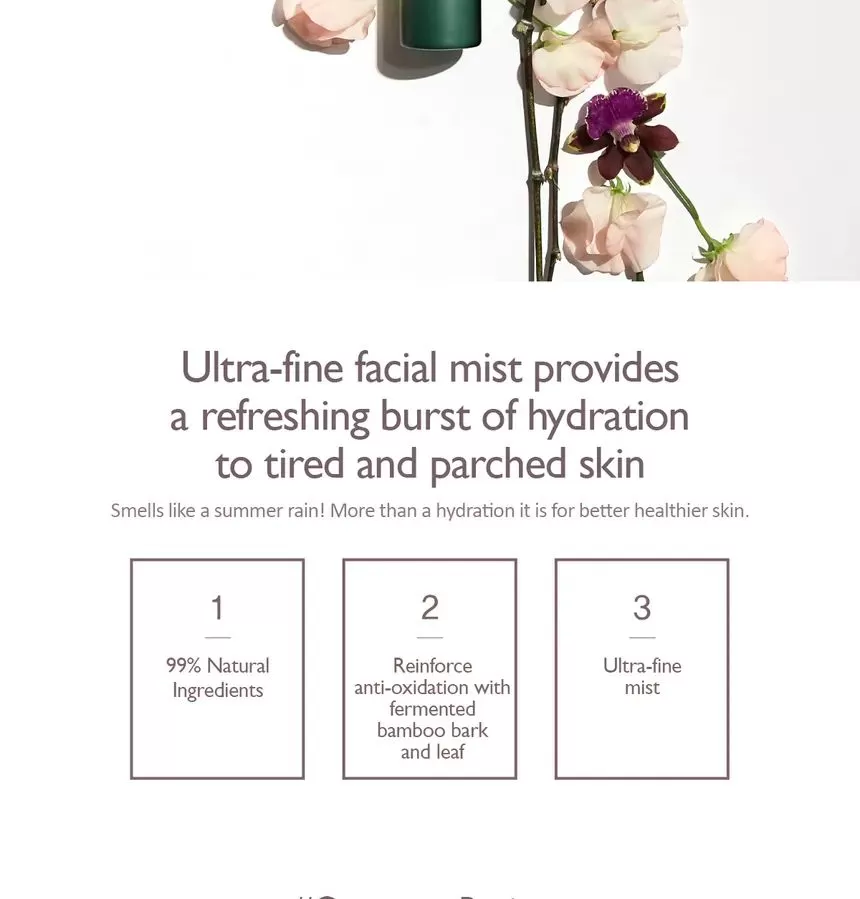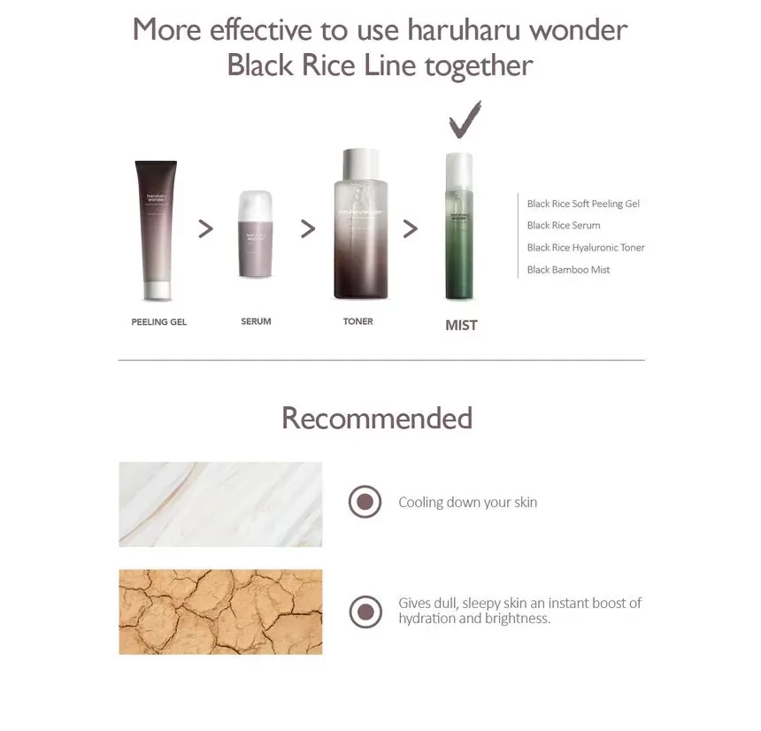 Haruharu Wonder Black Bamboo Mist er en multifunksjonell ansiktsmist som gir en umiddelbar boost av fuktighet og næring til huden. Denne lette, forfriskende sprayen er formulert med 95% naturlige ingredienser, inkludert fermentert svart bambusekstrakt, kjent for sine antioksidantrike og beroligende egenskaper. Misten fungerer som en toner og oppfriskende ansiktsspray, og hjelper til med å balansere hudens pH, redusere rødhet og beskytte mot ytre stressfaktorer. Med sin fine spraydispersjon legger den seg jevnt over huden uten å føles tung eller klissete, og etterlater huden hydrert og strålende hele dagen. Perfekt for alle hudtyper, inkludert sensitiv hud, og ideell som et fuktighetsgivende touch-up gjennom dagen. Gjør Haruharu Wonder Black Bamboo Mist til en uunnværlig del av hudpleierutinen din for en frisk og revitalisert hud!