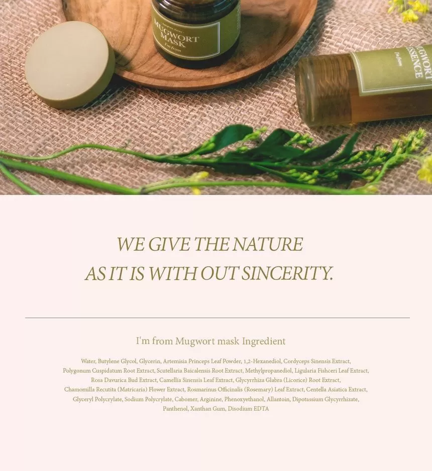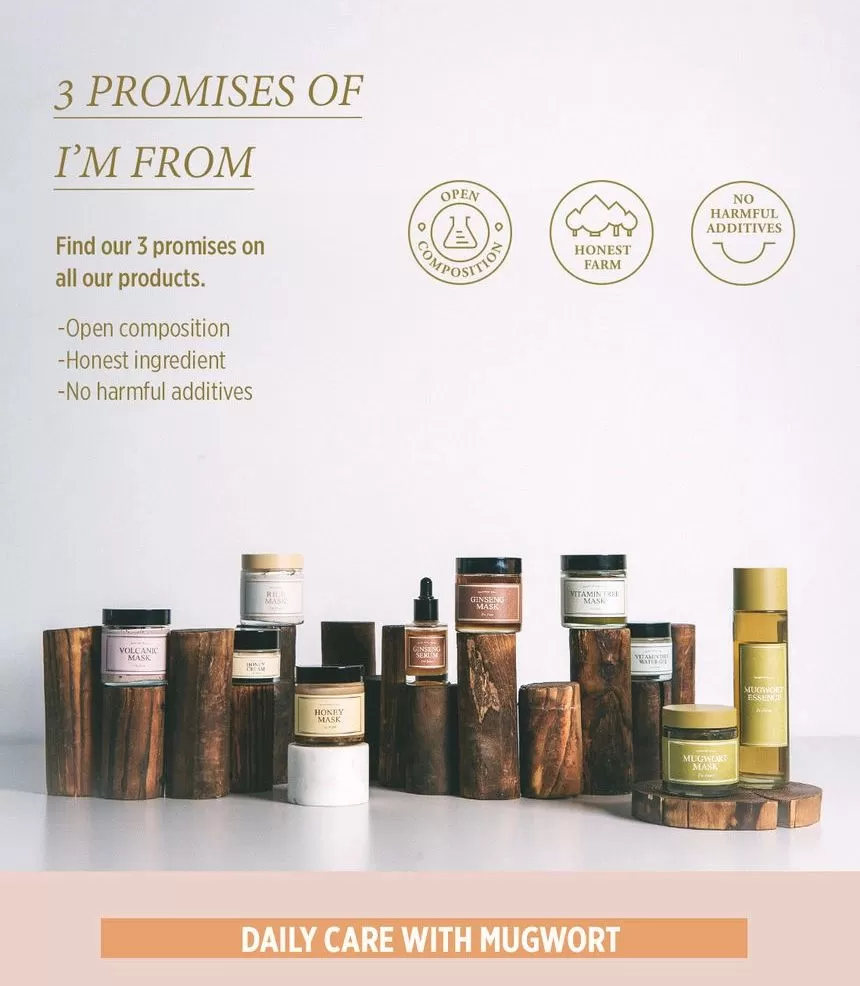 I`m From er et ingrediensbevisst merke som verdsetter naturens skjønnhet. Ikke bare henter de alle ingrediensene rett fra naturen, men de speider også over hele Sør-Korea for å oppdage og hente inn de fineste hudpleieingrediensene for den mest effektive formelen.