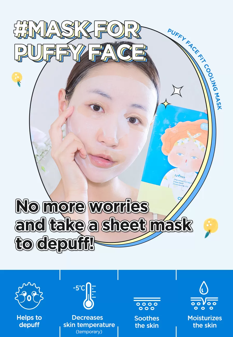 Isntree Puffy Face Fit Cooling Mask er en forfriskende og av-puffende sheet-mask/ansiktsmaske som vil kjøle ned og pleie irritert hud takket være 100.000ppm Naju pærefruktekstrakt. Denne ansiktsmaksen har en "face fit design" som gjør at den lett kan tilpasses ditt ansikt.