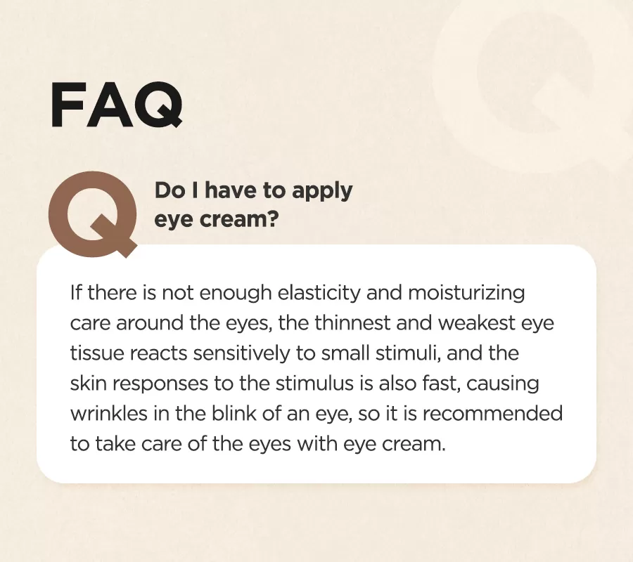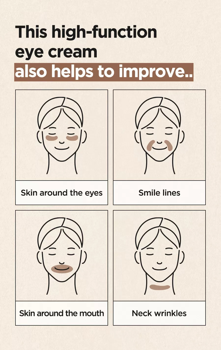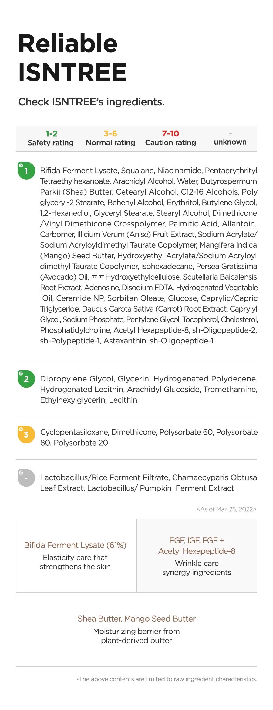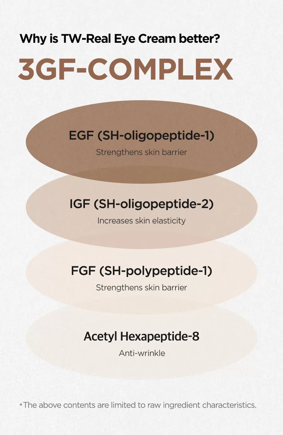 Isntree TW-Real Eye Cream inneholder 61% bifda som gjør dette til en næringsgivende og pleiende øyekrem som hjelper huden å bygge opp hudbarrieren. Inneholder Vitamin-E som vil beskytte huden mot solskader og frie radikaler. Niacinamide og Adenosine vil gi huden spenst og motvirke fine linjer, samtidig vil øyekremen motvirke mørke ringer rundt øynene. Er formulert slik at denne også kan brukes av de med sensitiv hudtype. Fri for parfyme, parabener, silikon og essensielle oljer.