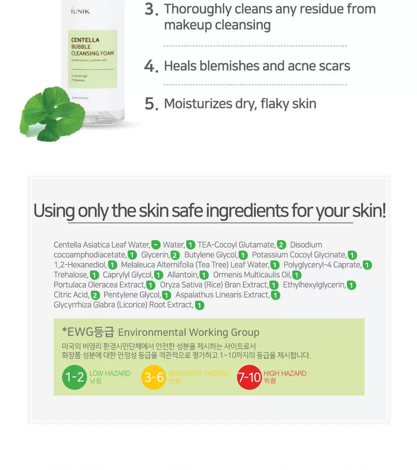 | Ingredienser | Centella Asiatica Leaf Water, Water, TEA-Cocoyl Glutamate, Disodium Cocoamphodiacetate, Glycerin, Butylene Glycol, Potassium Cocoyl Glycinate, Melaleuca Alternifolia (Tea Tree) Leaf Water, Polyglyceryl-4 Caprate, 1,2-Hexanediol, Caprylyl Glycol, Trehalose, Allantoin, Ormenis Multicaulis Oil, Portulaca Oleracea Extract, Oryza Sativa (Rice) Bran Extract, Ethylhexylglycerin, Citric Acid, Pentylene Glycol, Aspalathus Linearis Extract, Glycyrrhiza Glabra (Licorice) Root Extract, Commiphora Myrrha Resin Extract, Perilla Frutescens Leaf Extract, Yucca Schidigera Root Extract, Sodium Chloride |