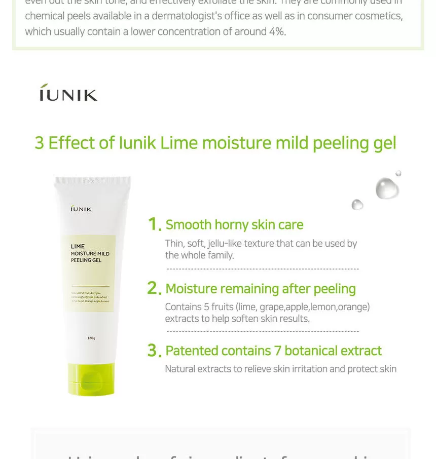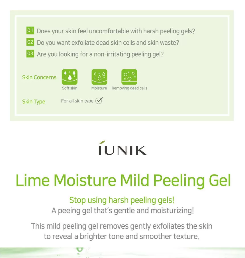 iUNIK Lime Moisture Mild Peeling Gel etterlater huden frisk, glatt og naturlig strålende etter hver bruk.