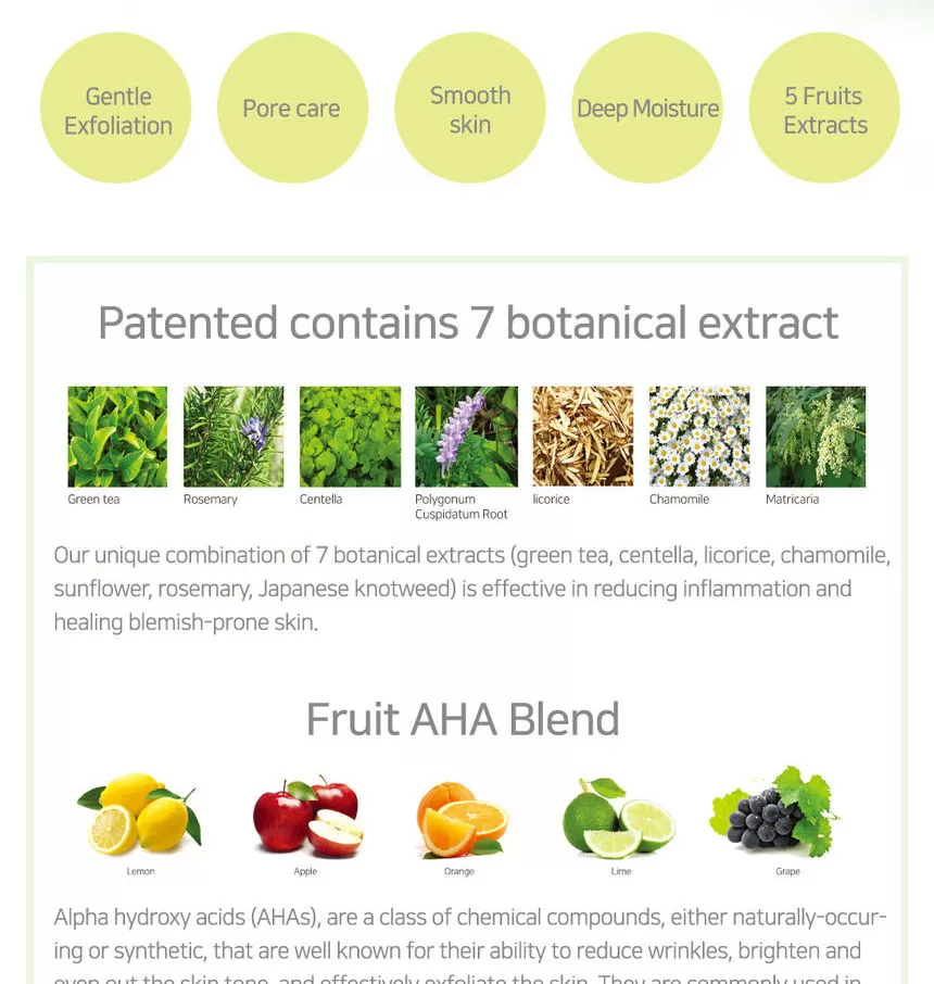 - Inneholder naturlige AHA-fruktekstrakter som eksfolierer skånsomt