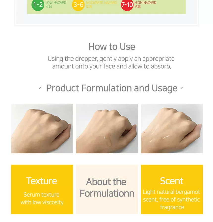 - Vitamin-rike fruktekstrakter og niacinamid som bidrar til jevnere hudtone, glød og vitalitet.