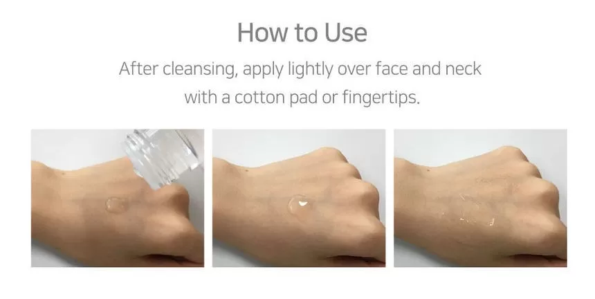 Etter rens: hell litt toner i hendene eller på en bomullspad og stryk eller klapp jevnt over ansikt og hals. Fortsett med serum og fuktighetskrem. Bruk morgen og kveld for best effekt.