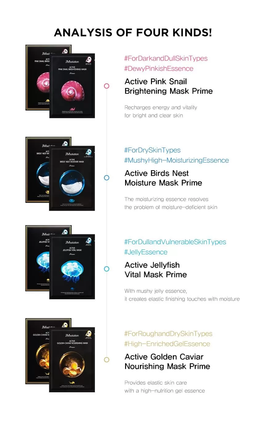 JMsolution Active Jellyfish Vital Mask vil gi huden vitalitet og fuktighet takket være manetekstrakt som er rik på fukt og kollagen. Artemisia Pr..