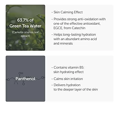 - Inneholder Jeju grønn te og panthenol.