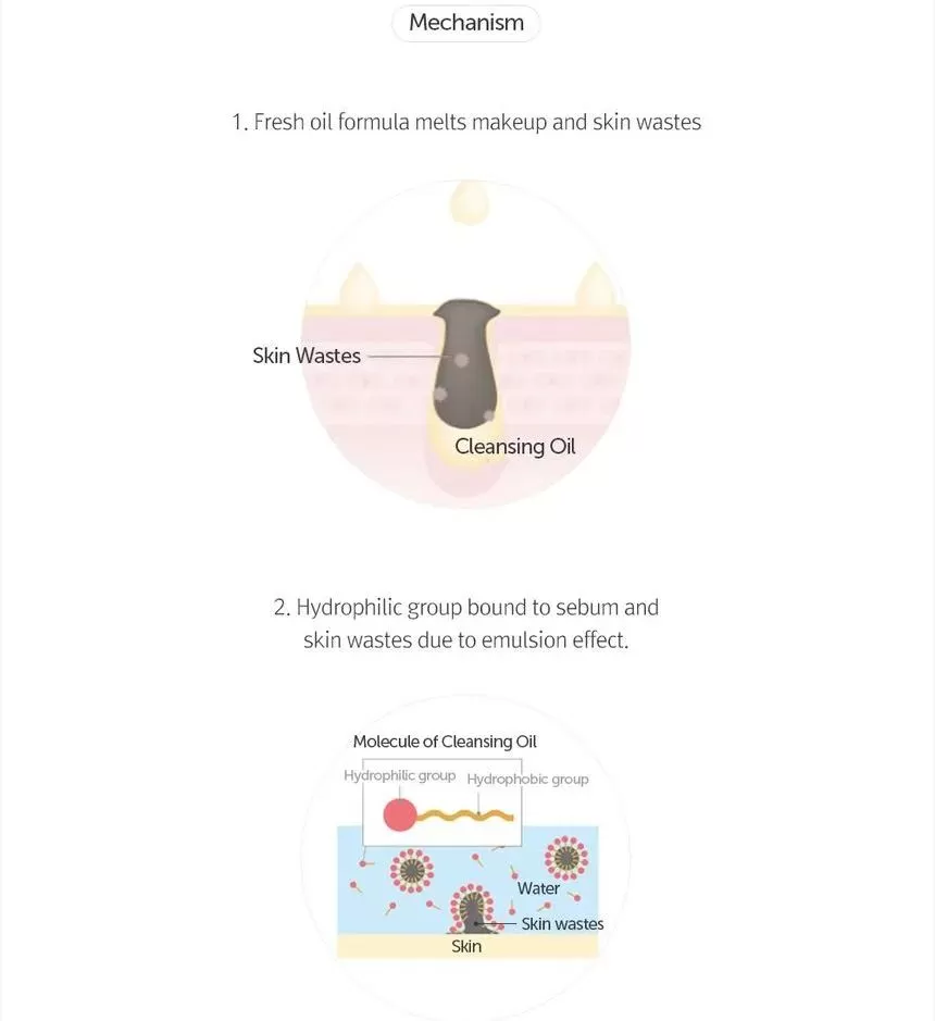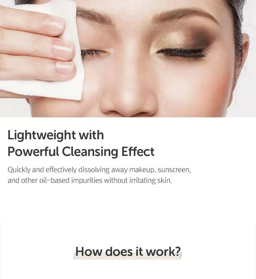 Første trinn i renserutinen. Påføres tørt ansikt, masser på tørt ansiktet også over øyne. Tilføy et par dråper vann inntil oljen blir hvit. Skyll av med lunkent vann. Brukes kveldstid
