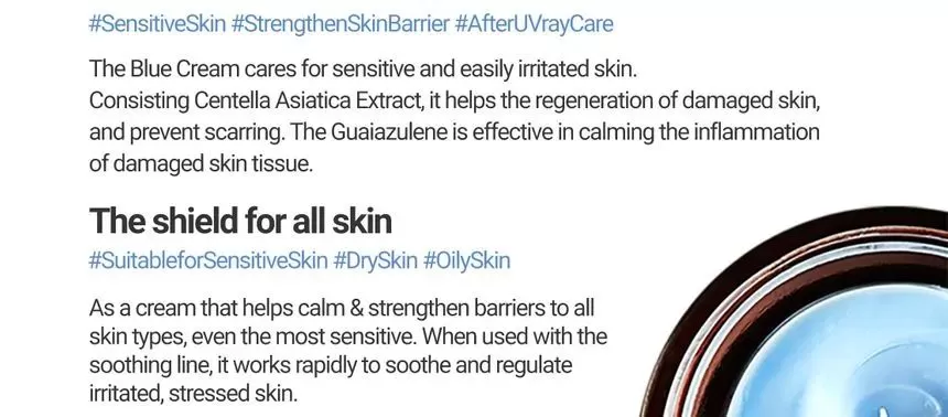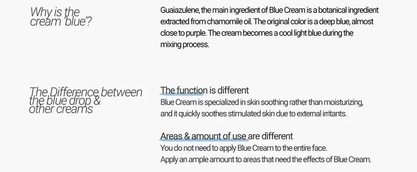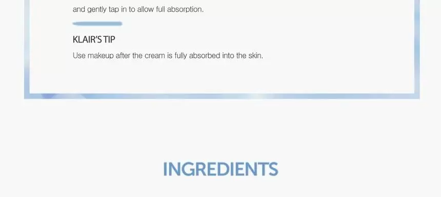 Klairs Midnight Blue Calming Cream passer til sensitiv hud som trenger mer enn fuktighetskrem, laget for å beskytte huden mot irritasjon, stress og hjelper til å fornye hudcellene. Denne fuktighetskremen styrker den naturlige hudbarrieren for de med ekstremt sensitiv hud og den virker beroligende på hud som allerede er irritert eller rød. Kan også brukes som en spot treatment krem, altså på områder du er irritert og rød. Kremen legger seg som en tynn hinne over det utsatte området for å beskytte, dempe rødhet og irritasjon. Kan brukes kan brukes morgen og på kvelden som siste steg i hudpleierutinen. Kremen klappes forsiktig inn i huden til den er absorbert. Kremen er også fin å bruke på akne for å forhindre arrdannelse.