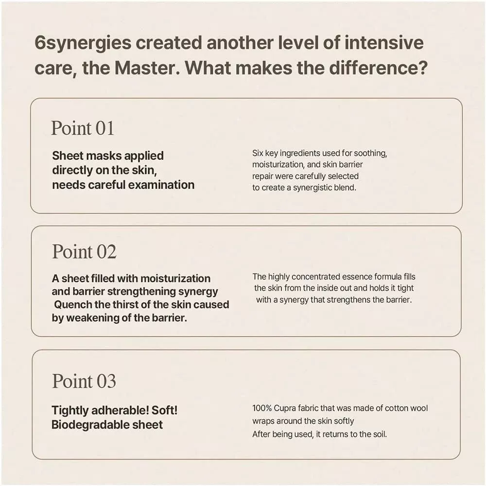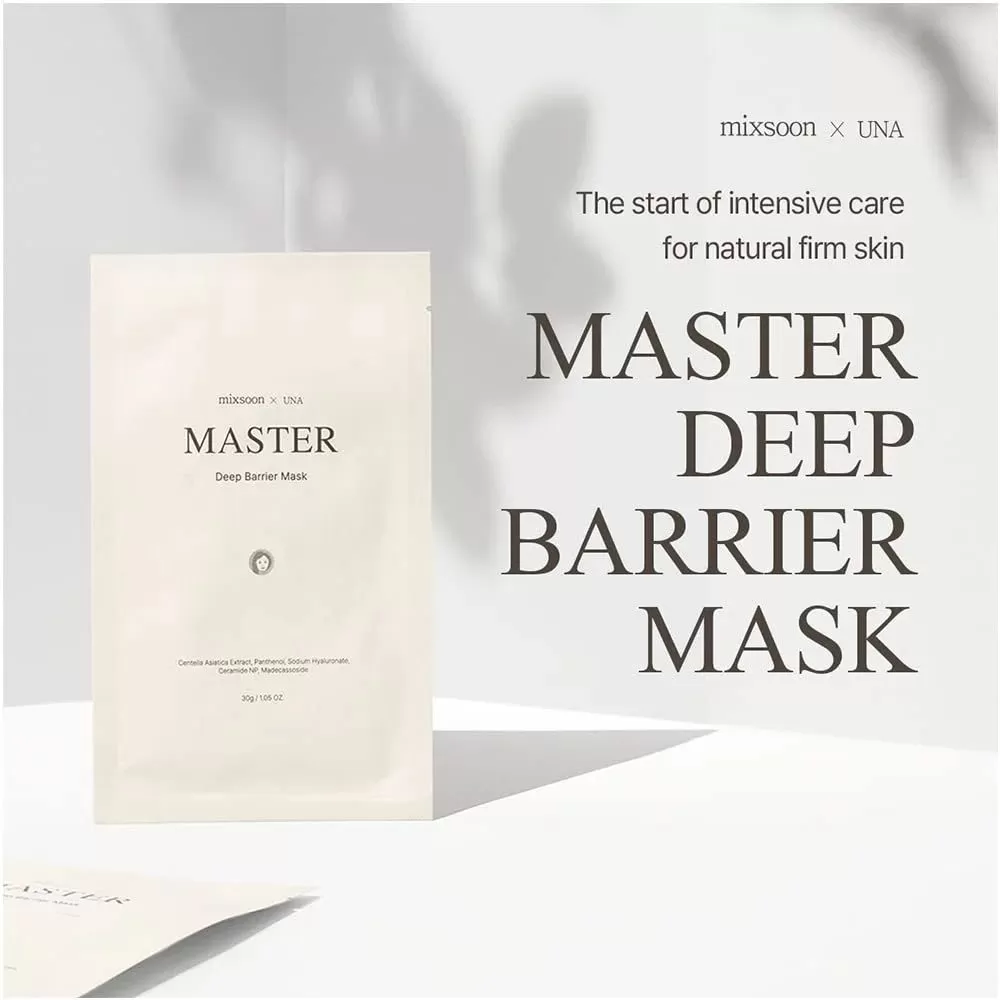 Mixsoon Master Deep Barrier Mask er en ansiktsmaske dynket i en potent essens som er dypt nærende og som vil styrke hudens naturlige beskyttende barriere og gir huden en økt fuktighetsnivå. Masken har en jevn og absorberende tekstur og er laget av blant annet bomullsfrø. Maskens formulering kombinerer Centella Asiatica Extract, Madecassoside og Ceramide NP for å effektivt berolige og hydrere huden.