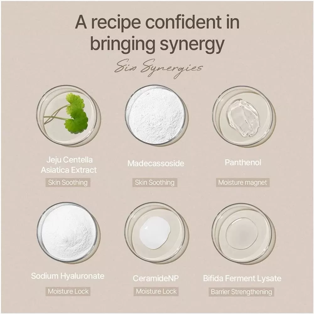 - Centella Asiatica Extract: En sår helende plante med anti-inflammatoriske egenskaper. Stimulerer syntesen av hyaluronsyre, fukter huden og øker antioksidant nivået i huden.