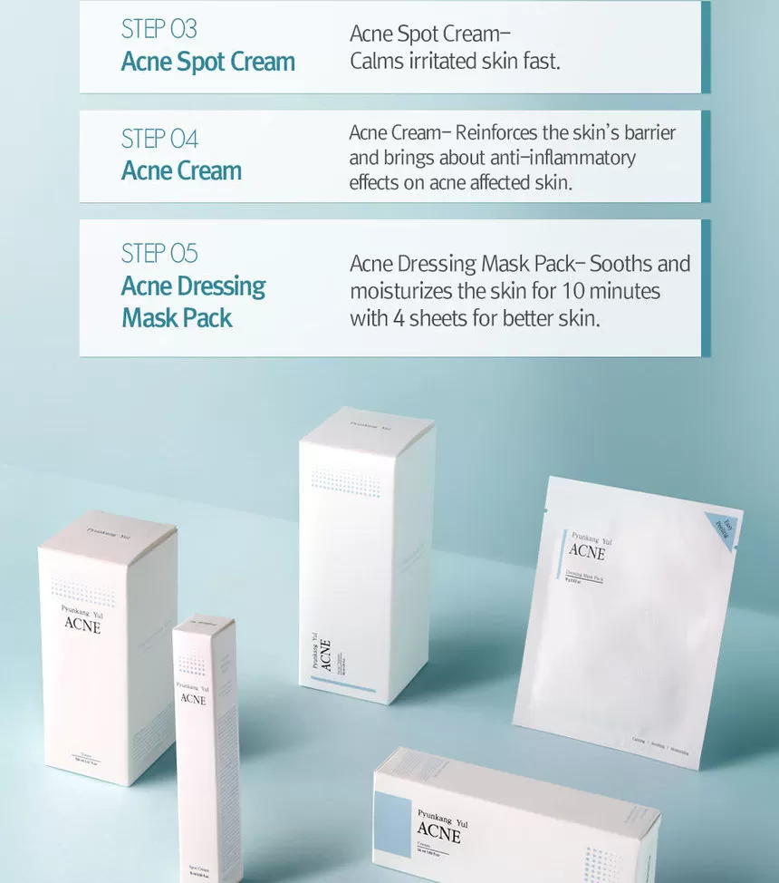 En hudkrem fra ACNE serien til Pyunkang Yul, ACNE serien er spesialutviklet for å behandle urenheter og kviser. Dette er en mild krem uten lukt som har en lett konsistens og trekker raskt inn i huden, kremen tilfører masse fuktighet, beroliger og behandler huden på en skånsom måte uten å tette porene. ACNE Cream passer godt til hud med urenheter og kviser, men også fet, kombinasjon og fet hud.
