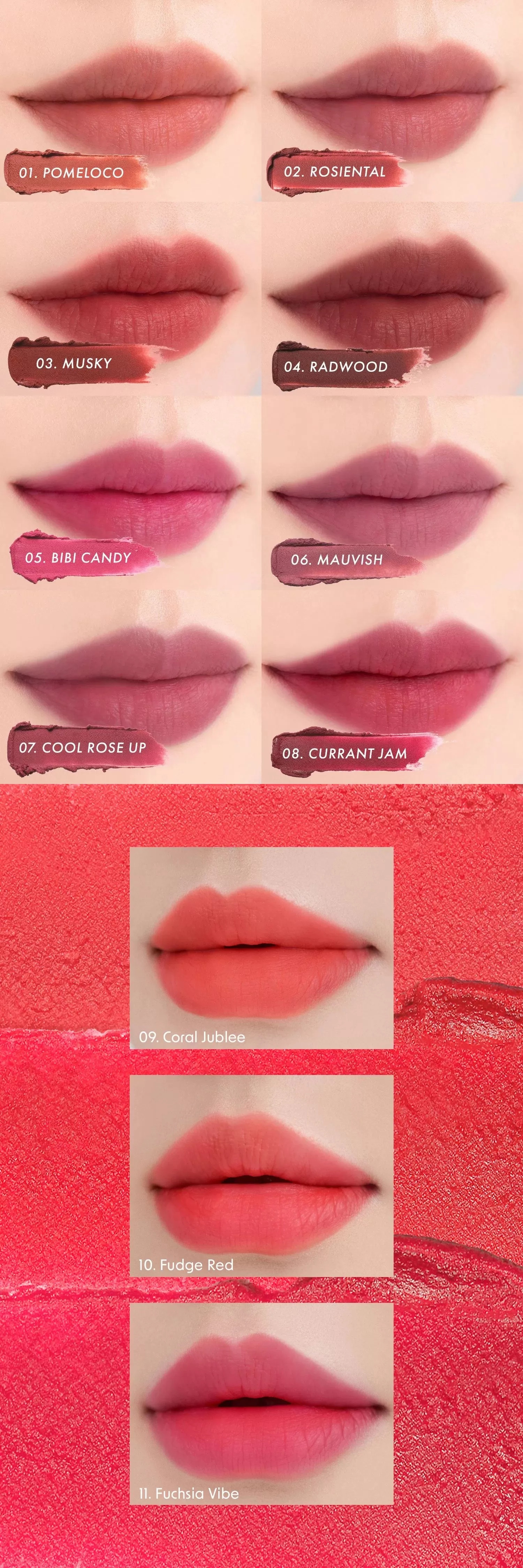 Denne matte leppefargen fra rom&nd er tilgjengelig i mange forskjellige nyanser. En høykvalitets leppe tint som er høypigmentert og fargen holder seg hele dagen! Kan brukes for et mildt gradert utseende eller iøynefallende fulle lepper. Denne serien heter Blur Fudge Tint som er en serie med matt farge som er lett å påføre, laget for hverdagslig bruk. Cool Rose Up har en fyldig plommerose farge.