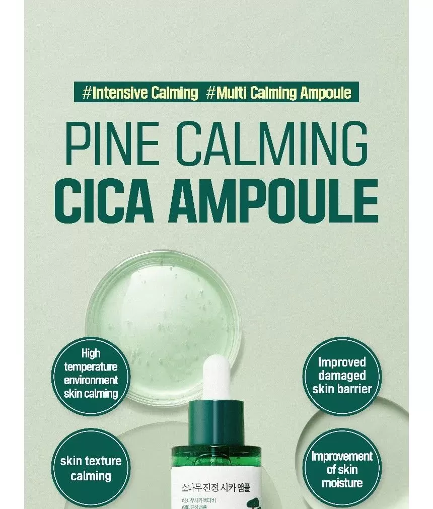 Round Lab Pine Calming Cica Ampoule 30ml er en kraftfull, men mild formel utviklet for å berolige og styrke sensitiv hud. Denne ampullen inneholder koreansk furuekstrakt som bidrar til å beskytte huden mot miljøskader og oksidativt stress, samtidig som den er rik på centella asiatica (cica), kjent for sine antiinflammatoriske og helende egenskaper. Denne kombinasjonen lindrer effektivt irritasjon, reduserer rødhet, og fremmer hudens naturlige gjenoppretting.