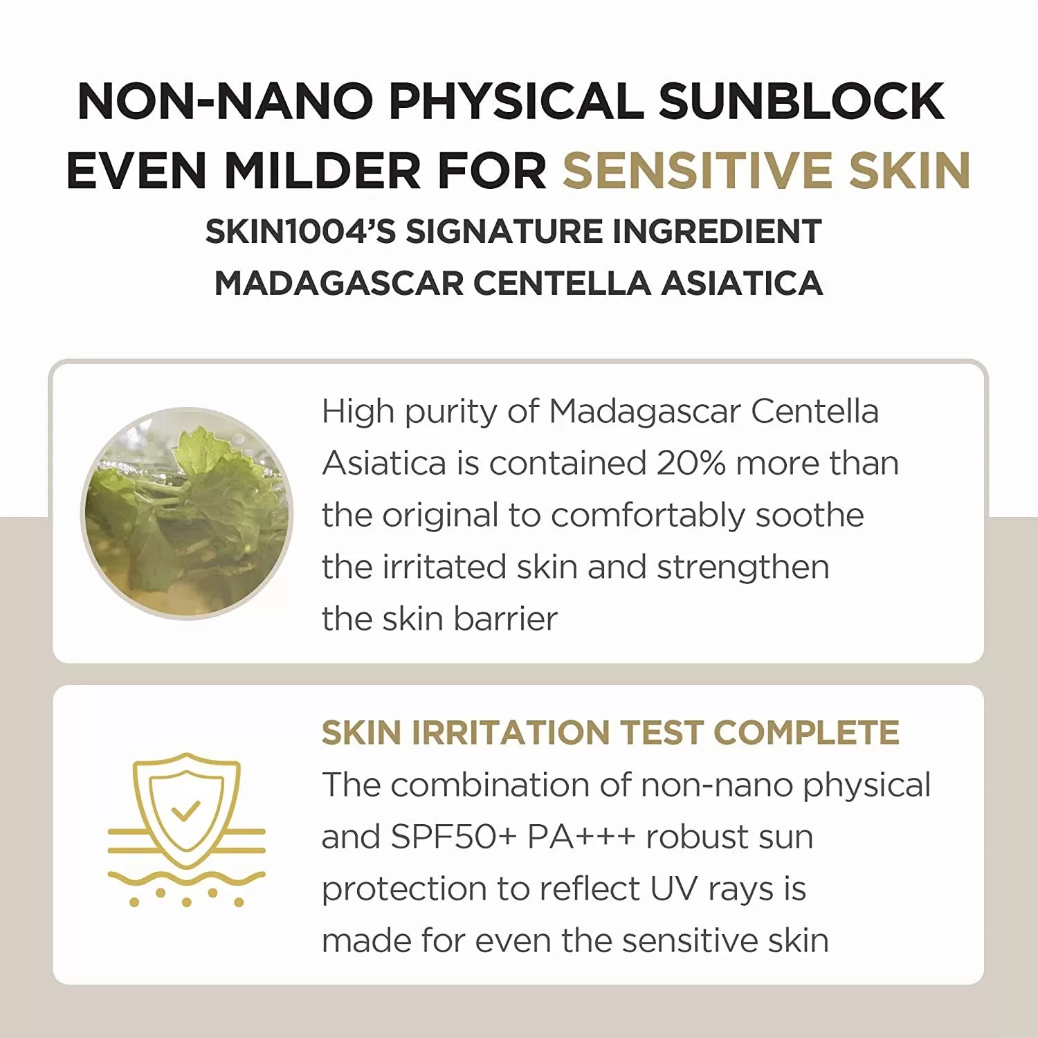 | Ingredienser | Centella Asiatica Extract (35.8%), Cyclopentasiloxane, Zinc Oxide, Butyloctyl Salicylate, Titanium Dioxide (CI 77891), Propanediol, Benzotriazolyl Dodecyl p-Cresol, Coptis Chinensis Root Extract, PEG-10 Dimethicone, Niacinamide, Disteardimonium Hectorite, Butylene Glycol, Magnesium Sulfate, 1,2-Hexanediol, Caprylic/Capric Glycerides, Dimethicone, Isohexadecane, Polyglyceryl-3 Polydimethylsiloxyethyl Dimethicone, VP/Hexadecene Copolymer, Polymethylsilsesquioxane, Aluminum Hydroxide, Stearic Acid, Sorbitan Sesquioleate, Triethoxycaprylylsilane, Dimethicone Crosspolymer, Dimethicone/Vinyl Dimethicone Crosspolymer, Dextrin, Theobroma Cacao (Cocoa) Extract, Pelargonium Graveolens Flower Oil, Water (Aqua), Citrus Aurantium Bergamia (Bergamot) Fruit Oil, Betaine, Scutellaria Baicalensis Root Extract, Polygonum Cuspidatum Root Extract, Glycyrrhiza Glabra (Licorice) Root Extract, Camellia Sinensis Leaf Extract, Sodium Hyaluronate, Rosmarinus Officinalis (Rosemary) Leaf Extract, Chamomilla Recutita (Matricaria) Flower Extract, Rosa Damascena Flower Oil, Pentylene Glycol, Madecassoside, Citronellol, Geraniol, Linalool |