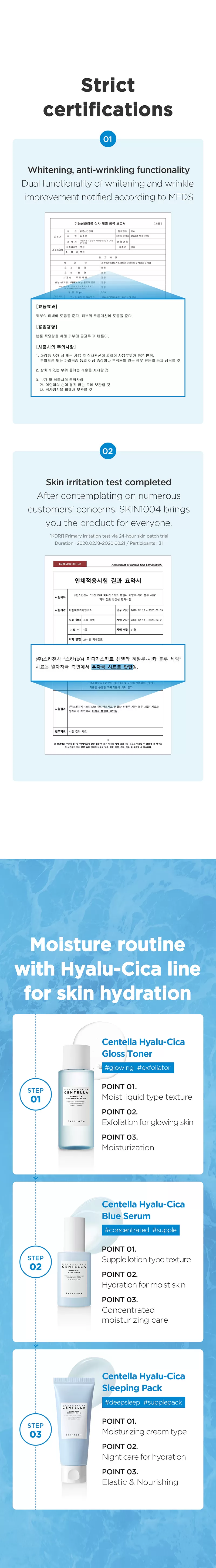 Skin1004 er også et prisvinnende hypoallergenisk og naturlig hudpleiemerke fra Korea. Med Centella Asiatica som hovedingrediens som stammer fra den uberørte naturen til Madagaskar, kjent som en av verdens fineste Centella. Skin1004 produkter er spesielle ved at alle produkter er tilsatt høykvalitets Centella-ekstrakt. Alle produktene er veldig milde, beroligende, ekstra lette og ikke-komedogene for å gi en pustende, ikke-klebrig og myk finish.