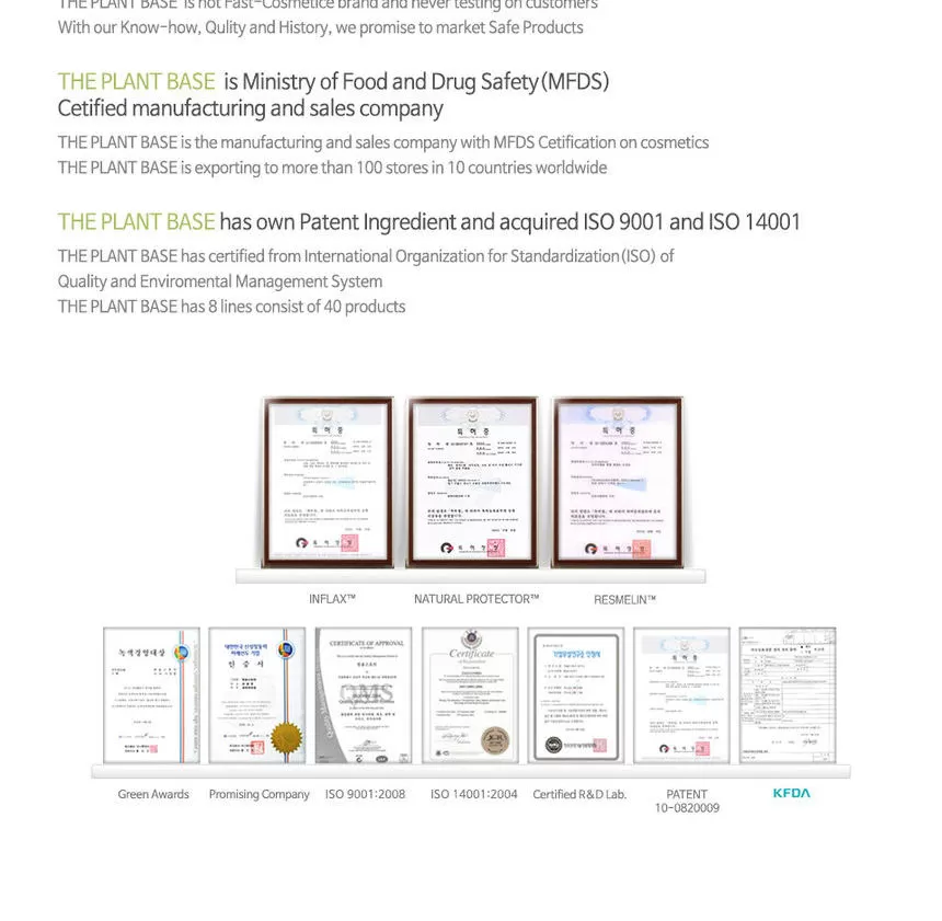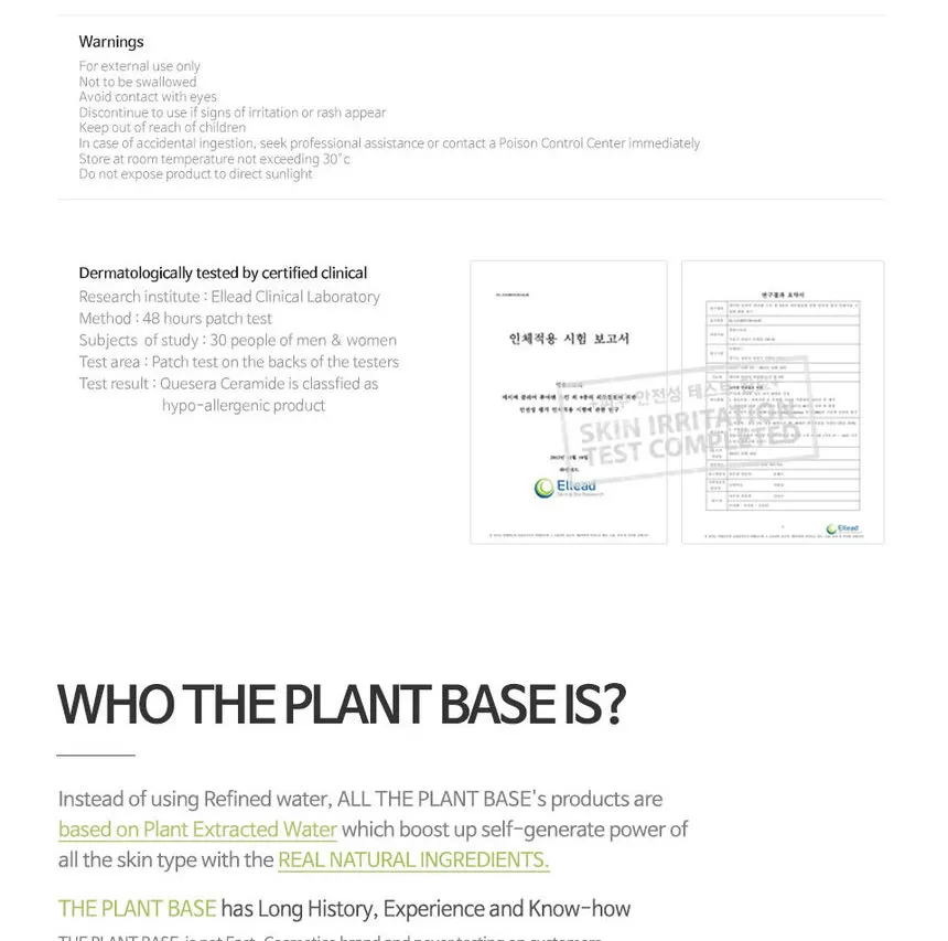 Etablert i 2005, The Plant Base ble raskt populær med sine 100% naturlige håndlagde såper. Med et ønske om å lage naturlig hudpleie og kosmetikkprodukter egnet for familiebruk, dyrker varemerket kontinuerlig hypoallergene og høykvalitetsprodukter, The Plant Base er i dag en av de ledende kosmetikk og hudpleiemerkene i Korea. Alle produkter er 100% laget i Korea og er Cruelty-Free.